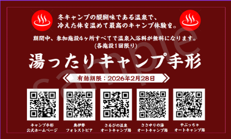 対象のキャンプ場で1,100円で温泉手形をご購入いただけます。