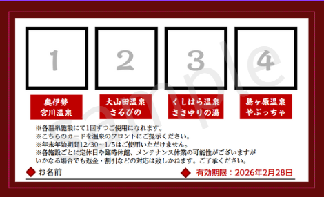 参加施設4ヶ所すべてで温泉入浴料が無料になります。